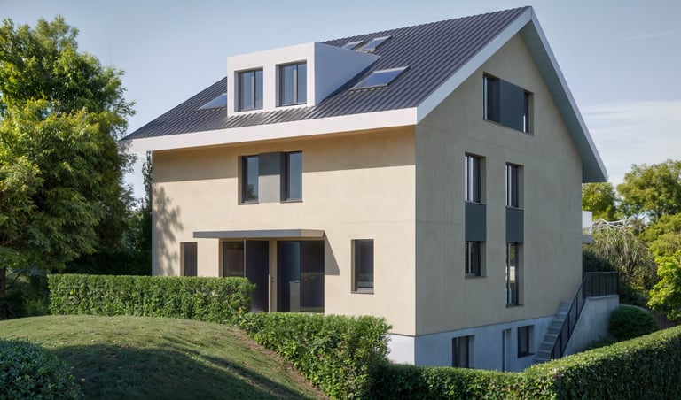 Deux villas neuves à Épalinges. Lumière, verdure, tranquillité. Finitions au gré de l'acquéreur. Livraison automne 2026, directement du propriétaire. Agences s'abstenir !
